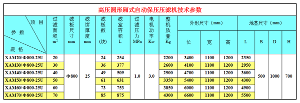 高壓圓形廂式自動保壓壓濾機技術參數